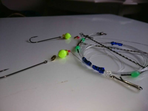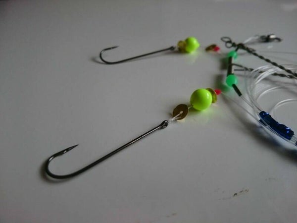 - Twin hooks with beads and attractors beads to tempt Black Bream and other fish