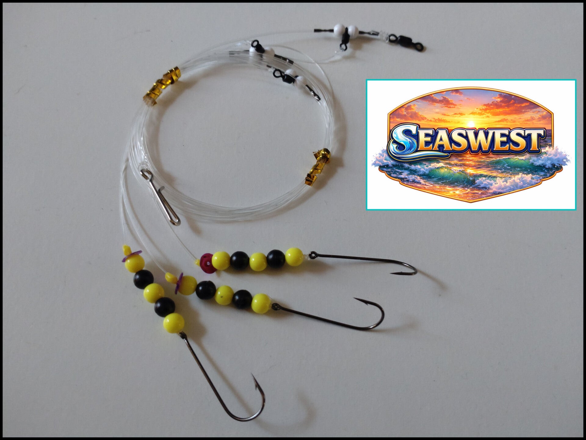 Ideal for situations when extreme long range casting is not required. They are made with 70lb Asso Classic line as the Rig Body and Asso Oblivion memory free line for the snoods. Power swivels used are 100lb for the hook snoods and there is a 195lb swivel at the top for quick change and a rig clip for the weight. Hooks are KAMASAN B-940 Chemically etched Hooks and razor sharp! All come individually packed with rig details on each pack.